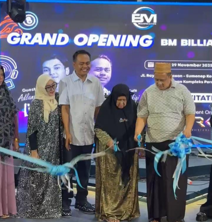 Oplus_131072Pamekasan, Serikatnasional.id — BM Billiards & Café yang berlokasi di Jalan Raya Pamekasan, Desa Buddegen, Kecamatan Pamekasan, Kabupaten Pamekasan, resmi dibuka.Acara peresmian ini dihadiri langsung oleh pemilik BM Billiard, H. Khairul Umam, yang akrab disapa H. Her, bersama keluarga besarnya.