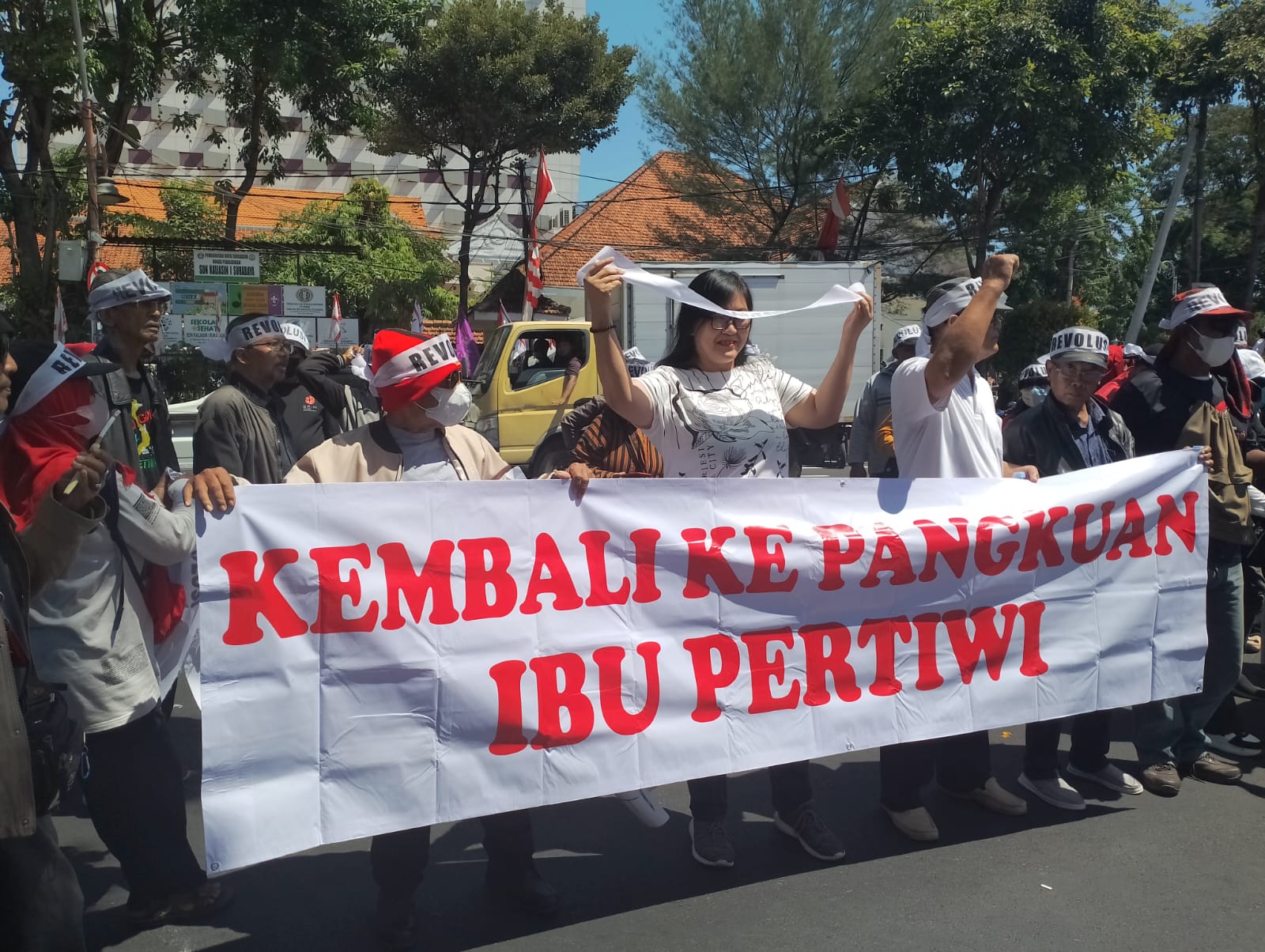 Aksi demontrasi dimulai pada 11:00 WIB, dan massa aksi menyampaikan menyampaikan pendapat secera bergantian, aksi berlangsung dengan khidmat dan tidak terpantau bersitegang dengan aparat.
