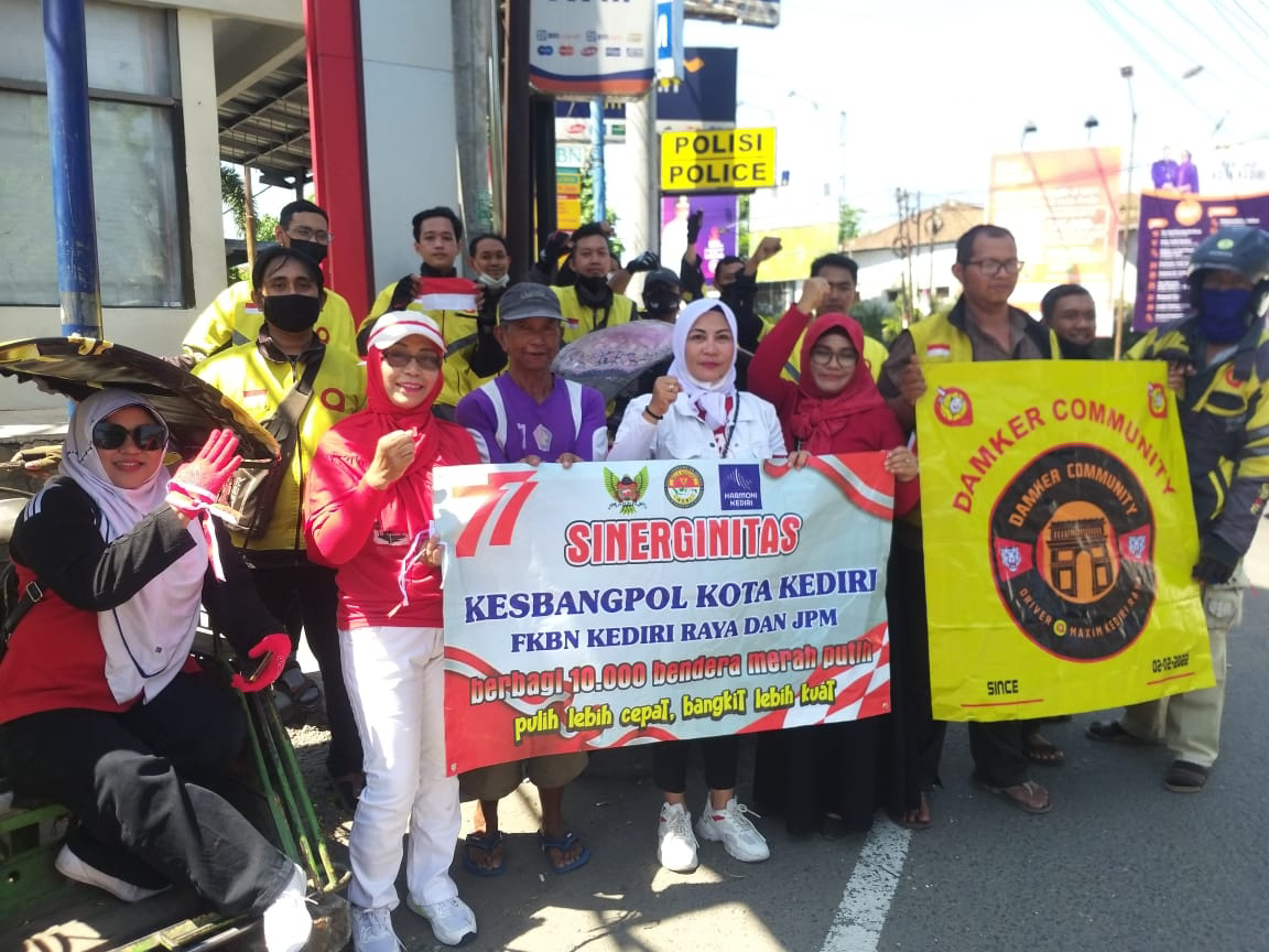 KESBANGPOL PJM Kota Kediri dan FKBN Kediri Raya Membagikan Ribuan Bendera Wujud Merayakan HUT Kemerdekaan RI ke-77