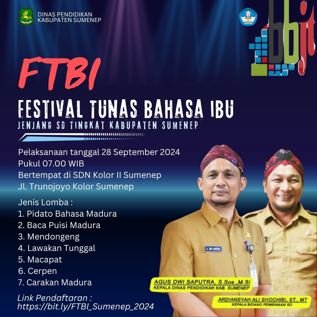 SUMENEP, SERIKATNASIONAL.ID | Dinas Pendidikan (Disdik) bakal menggelar Festival Tunas Bahasa Ibu di SDN kolor II pada hari Sabtu (28/09/2024) besok.