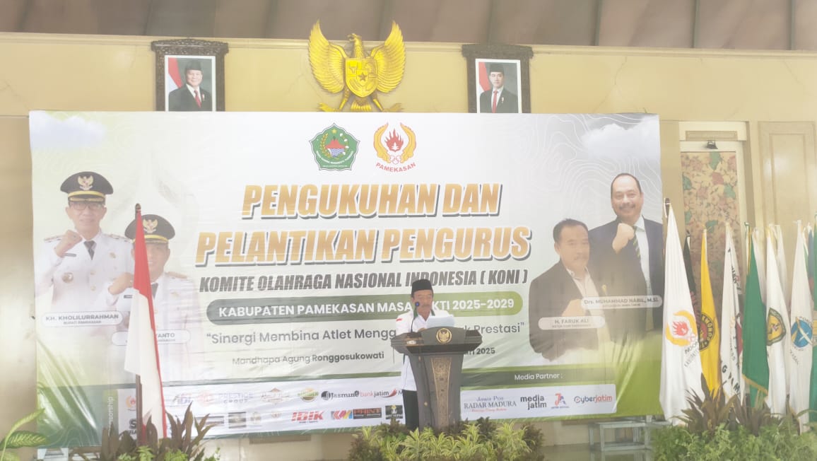 Pamekasan, Serikatnasional.id – Pengurus (KONI) komite Nasional Indonesia kabupaten Pamekasan masa bakti 2025-2029 resmi di kukuhkan dan di lantik di pendopo agung Ronggo Sukowati.
