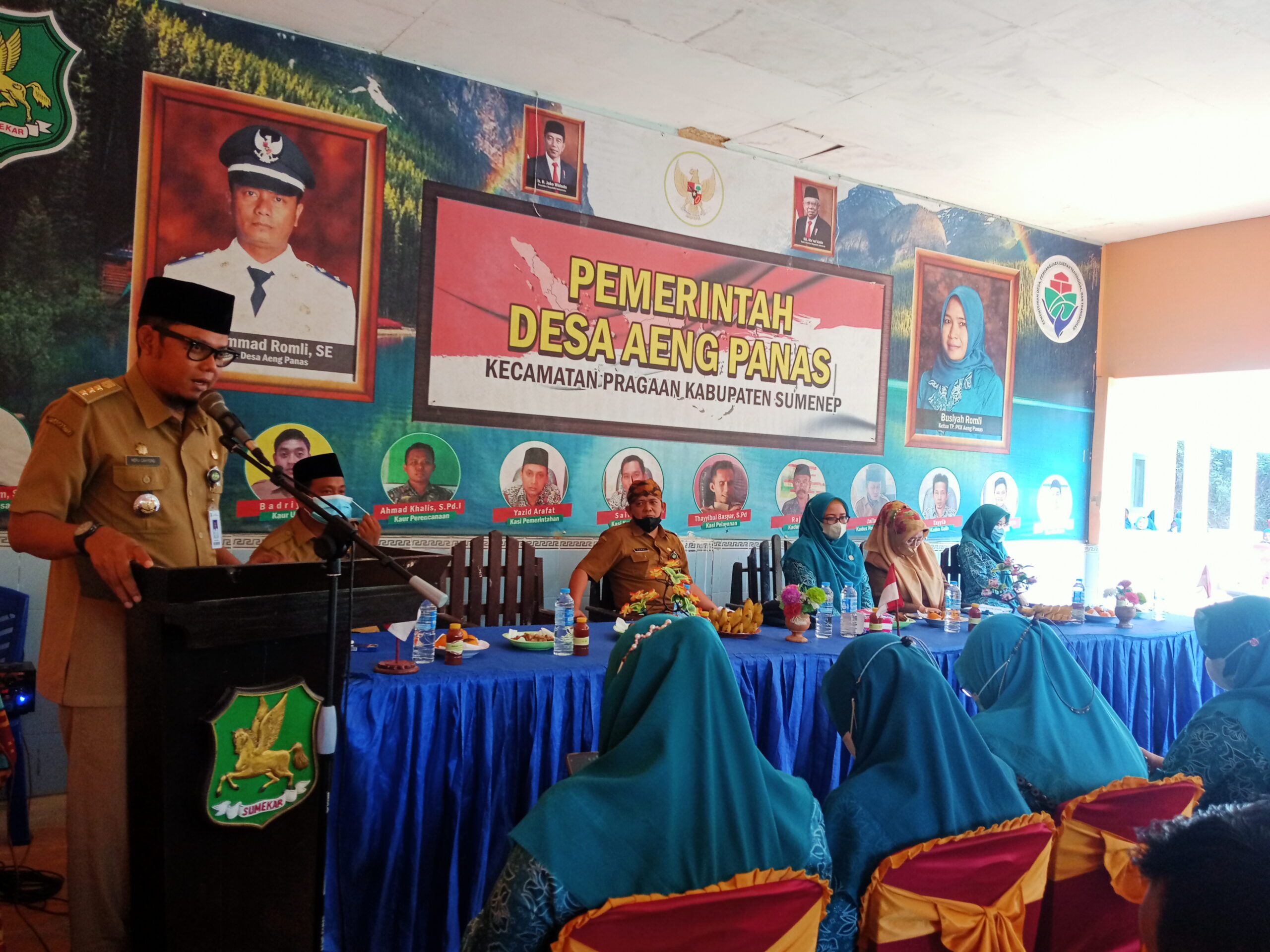 Kali ini, Dinas Pemberdayaan Masyarakat dan Desa (DPMD) bersama Tim penilai dari kabupaten setempat melakukan penilaian ke desa Aeng Panas, Kecamatan Pragaan, Kabupaten Sumenep, Madura, Jawa Timur, Selasa 29 Maret 2022 di Balai desa setempat.