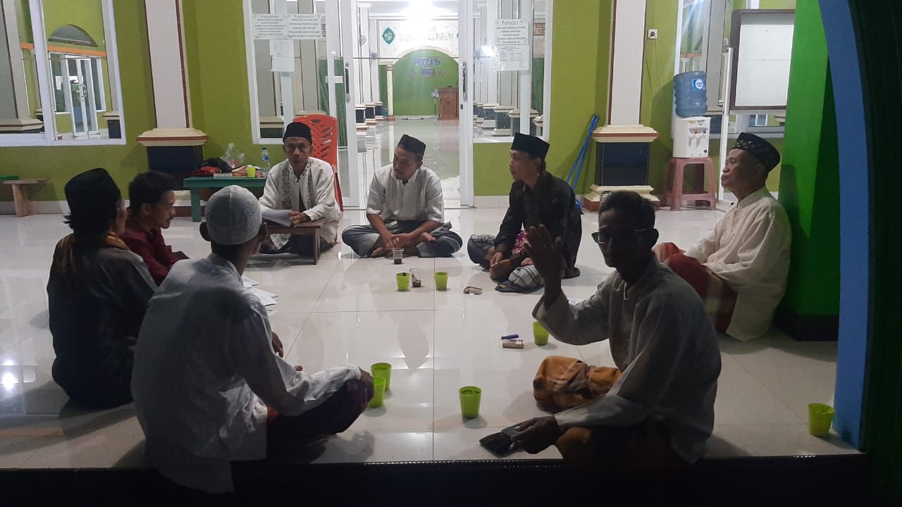Sebagian jama’ah berkumpul di pelataran masjid mengadakan rapat untuk membahas pembentukan kepengurusan panitia zakat fitrah,dalam hal ini  ketua DKM Masjid bpk moh.ihsan Rahmat Selaku dewan penasehat memberikan wewenang kepada jama’ah yang akan bertugas sebagai berikut :