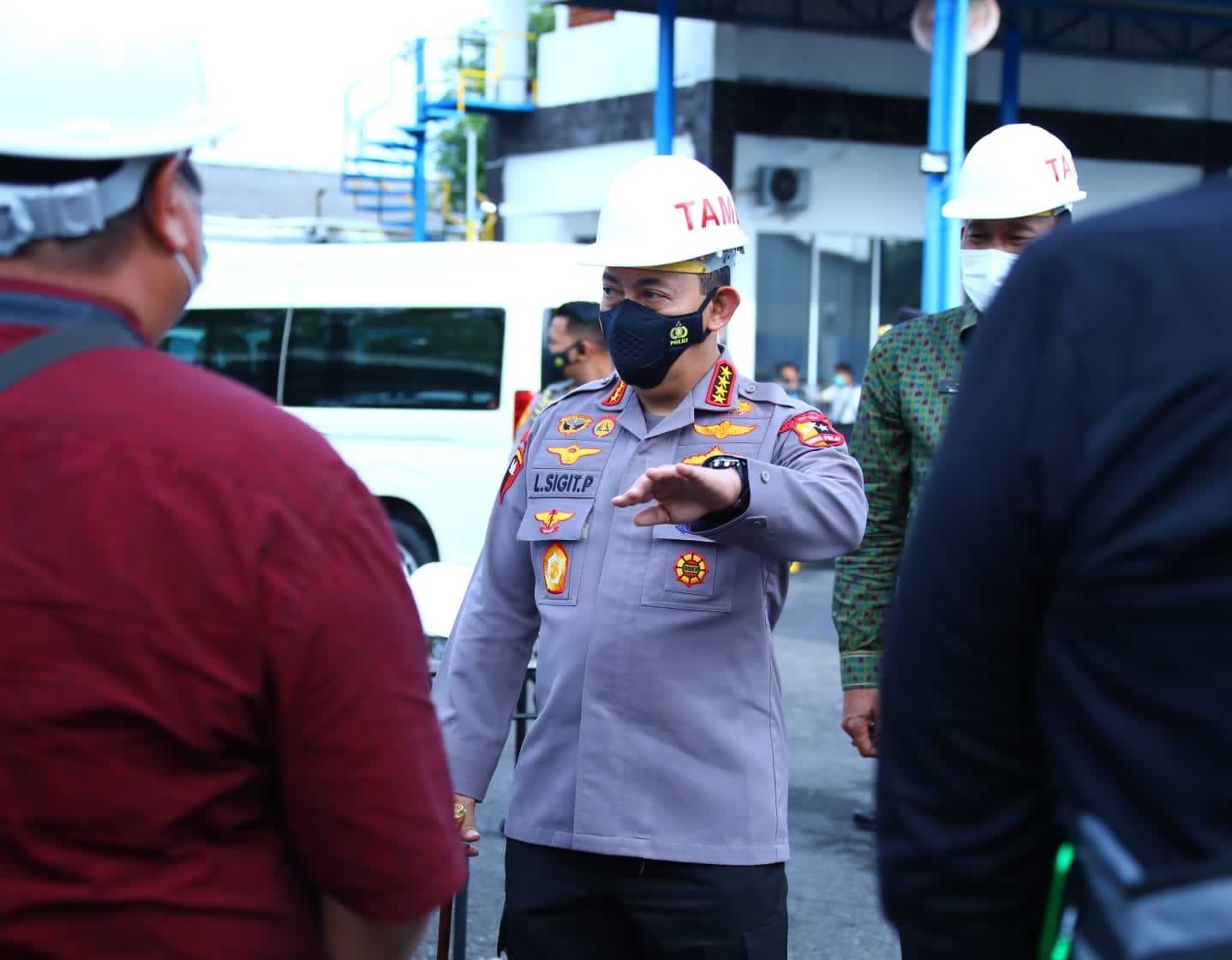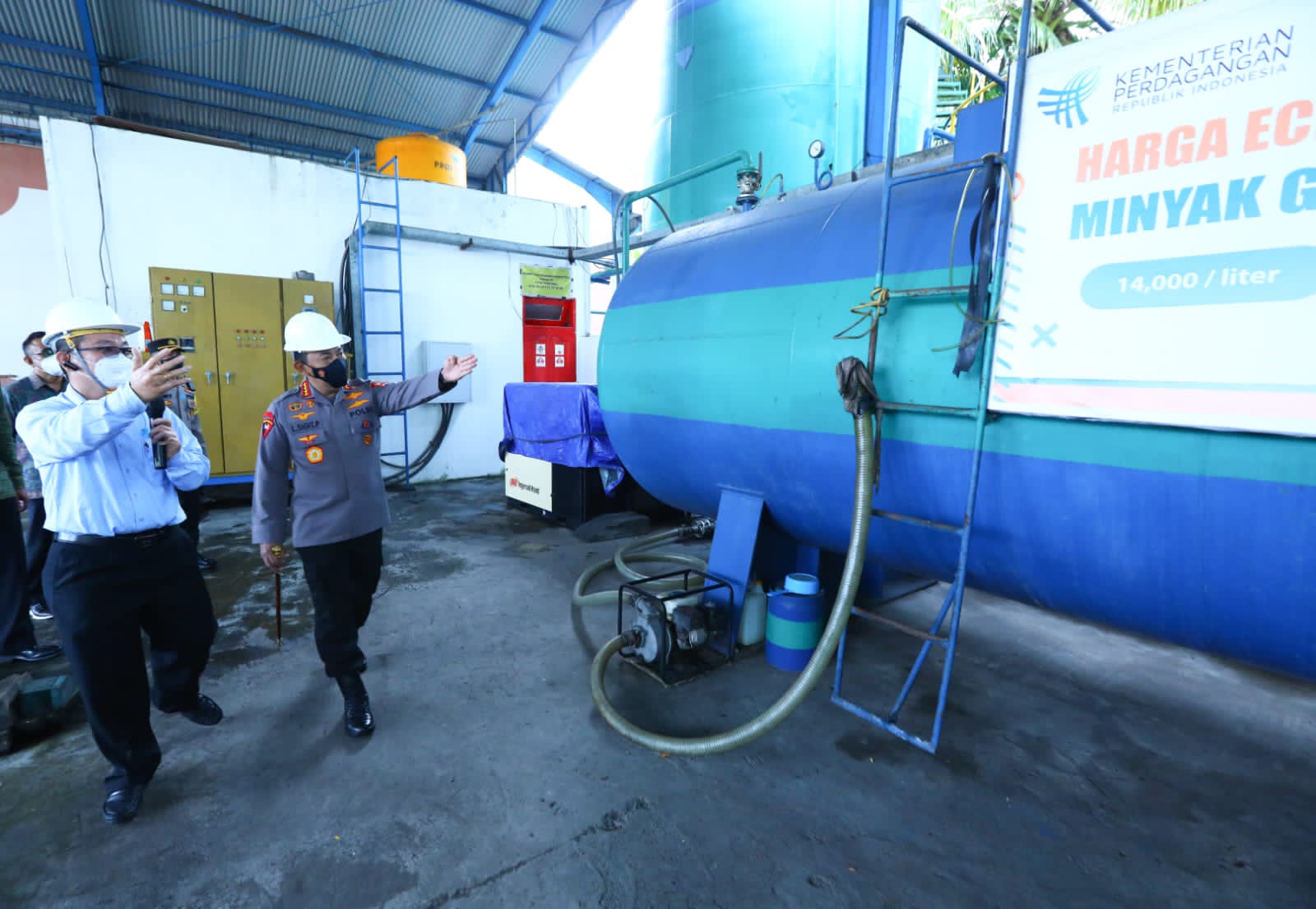 BALI – Kapolri Jenderal Polisi Listyo Sigit Prabowo meninjau langsung pabrik minyak goreng PT Sawit Tunggal Arta Raya (STAR) Bali, di Pelabuhan Benoa, Kota Denpasar, Bali, Jumat (18/3/2022).